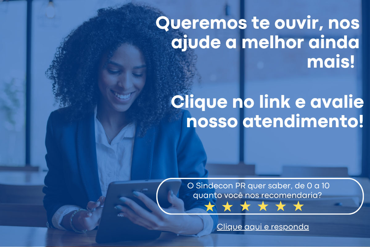 Estamos sempre em busca de aprimorar nossos serviços e atender cada vez melhor às suas necessidades. Por isso, o Sindecon-PR está realizando uma pesquisa de satisfação para entender melhor suas expectativas e experiências com nossa associação.