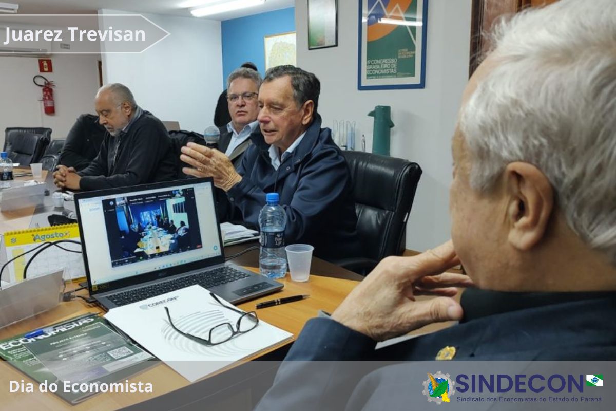 No Dia do Economista, durante uma plenária na sede do Corecon PR, realizada em 13 de agosto de 2024, o presidente do Sindecon- PR, Juarez Trevisan compartilhou sua inspiradora história de vida e seu desenvolvimento como profissional. Ele destacou sua paixão pela economia, refletindo sobre as experiências que moldaram sua trajetória e a importância da profissão para o crescimento e desenvolvimento da sociedade. Trevisan também enfatizou o papel do economista na construção de políticas públicas e no enfrentamento dos desafios econômicos atuais.