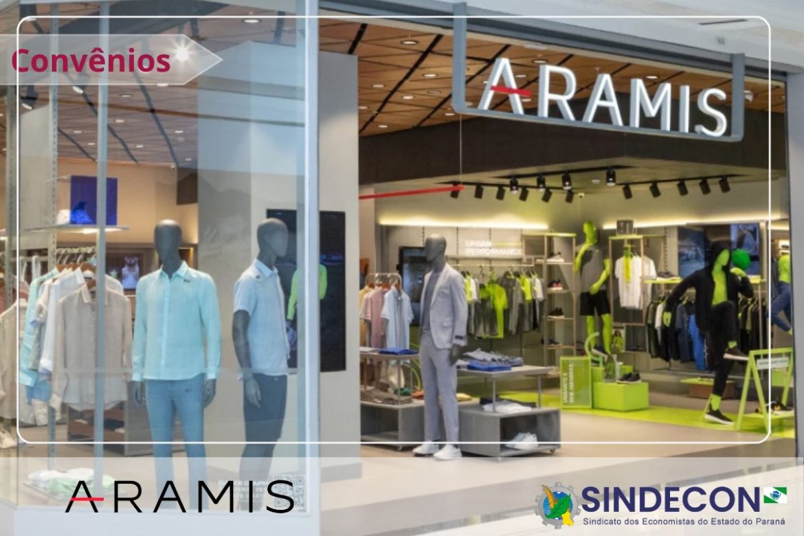 Temos o prazer de informar que o Sindecon – Sindicato dos Economistas do Estado do Paraná firmou um novo convênio com a Loja Aramis Aurora Shopping, localizada em Londrina/Paraná. A partir de agora, todos os economistas filiados poderão usufruir de descontos especiais nas compras realizadas na loja: