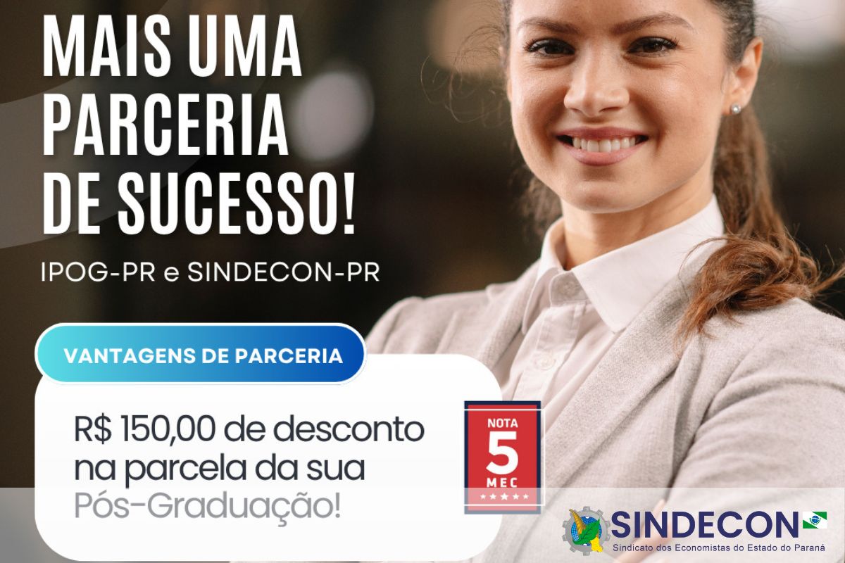 O Sindicato dos Economistas do Estado do Paraná (SINDECON-PR) tem a satisfação de anunciar a assinatura de um novo convênio com o Instituto de Pós-Graduação & Graduação (IPOG), Instituição de Ensino Superior representada por EIP – Estudos Integrados do Paraná Ltda.