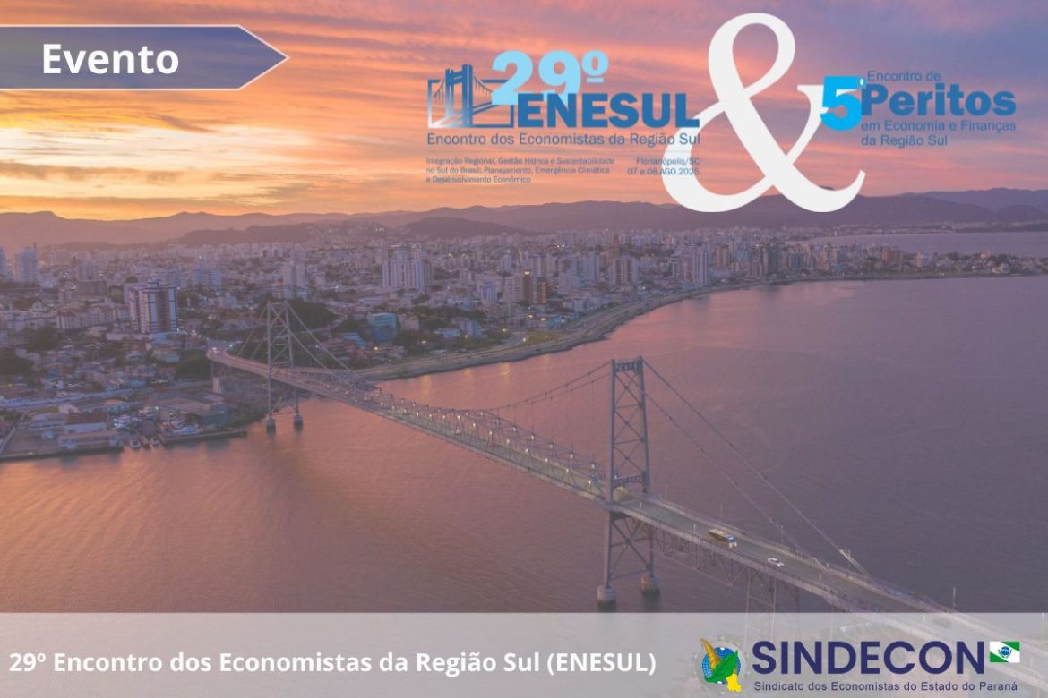 O 29º Encontro dos Economistas da Região Sul (ENESUL) será realizado em Florianópolis, nos dias 07 e 08 de agosto de 2025. O evento, que ocorre em rodízio entre os Corecons do PR, SC e RS, reunirá profissionais para debater temas relevantes da economia regional. Paralelamente, acontecerá o 5º Encontro de Peritos em Economia e Finanças da Região Sul, promovendo reflexões sobre esse campo crescente de atuação, além de estimular o networking e a troca de experiências.